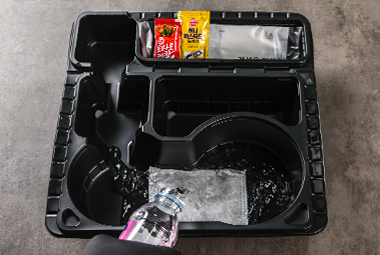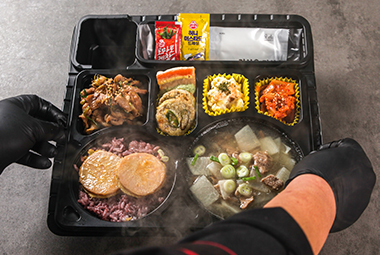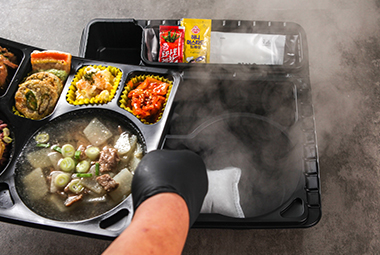 5~7분 뒤 도시락 용기의 실링필름을 개봉 후 식사를합니다.